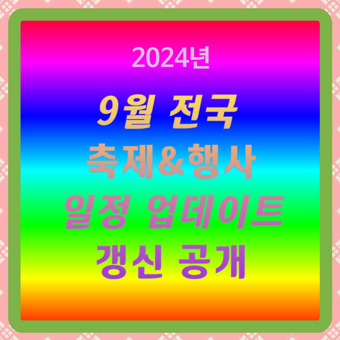 코스모스가 한들거리는 9월의 가을바람이 시작되었습니다. 추석과 오색단풍을 맞아 전국 곳곳에서 다양한 축제와 행사가 펼쳐지고 있습니다. 가족과 지인들과 함께 아름다운 추억을 만드시는 즐거운 시간 만들어 보세요! ( 본 내용은 기후나 사정에 따라 일정이 변동될 수 있으니 꼭! 연락처에 문의하시기 바랍니다.)